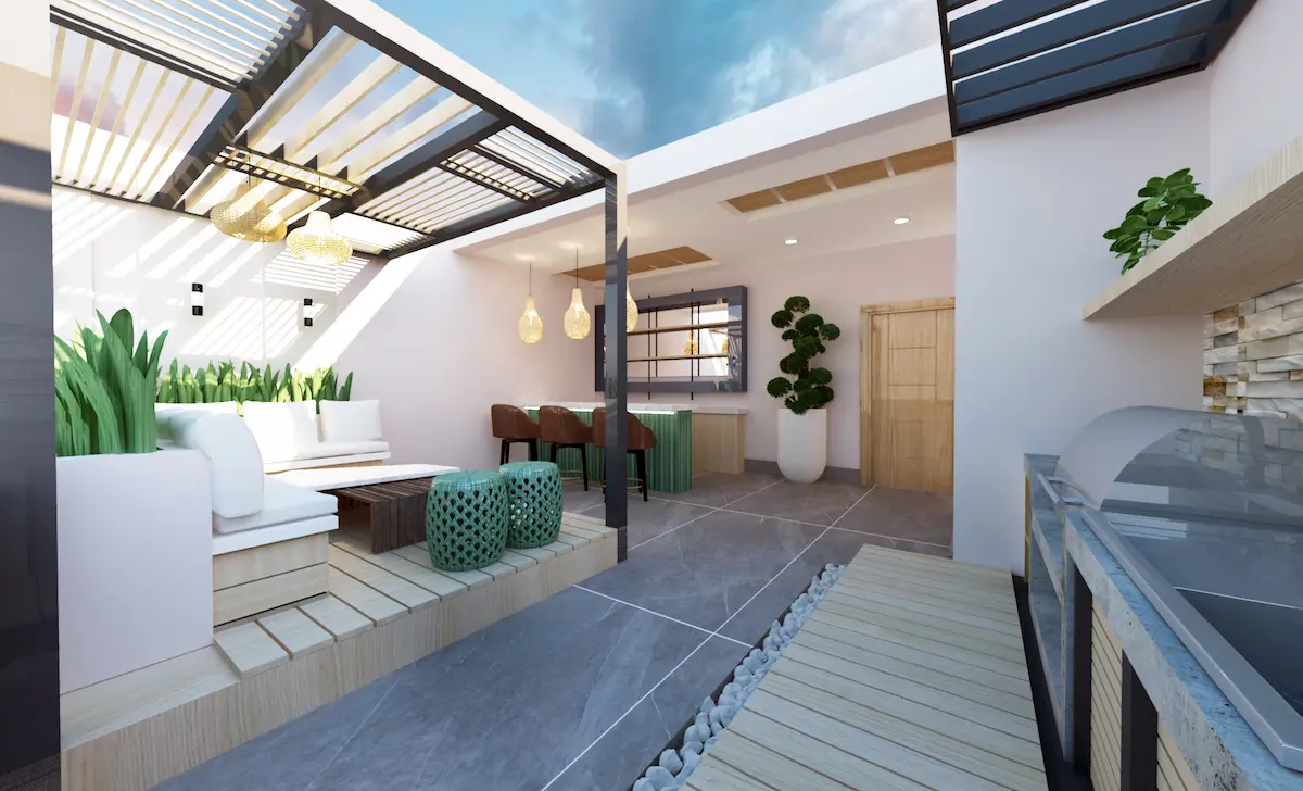 El área social es ese espacio de interacción, ocio y relajación. Estos espacios sirven para usar en momentos y actividades claves como fiestas, celebraciones o simplemente para pasar un momento tranquilo.